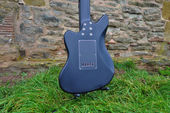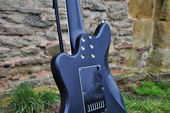 The body is a single piece of Alder and features a slightly revised cutaway and body heel to allow access to all 26 frets. The neck is a 3 piece construction featuring a beautiful AAA grade Ebony fingerboard with 26 frets and binding. Both body and neck are finished in Satin black, adding a touch of menace to the appearance of the guitar.