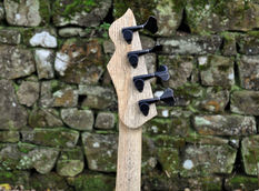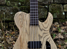 This is my Echo MK II shape - a sort of modern less traditional version of a tele bass. It features a luxurious Ebony top on a 1 piece English Ash body with a ceruse finish. So the whole bass has a bit of a black and white colour theme.